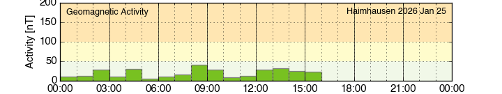 up to 1500 nT can occur. Depending on the disturbance level, the magnetogram uses different scales identified by the background color
